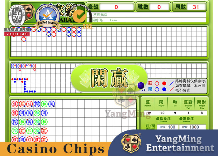| ফাংশন প্যারামিটার | 1. এটি মেইন রোড, ঝুজি রোড, ছোট রাস্তা, বড় চোখ, ম্যাকাওতে সাধারণত ব্যবহৃত পেঁয়াজ রাস্তা প্রদর্শন করতে পারে (স্ট্যান্ডার্ড ম্যাকাও নিয়ম অঙ্কন পদ্ধতি ব্যবহার করে) 2. ব্যাংক, নিষ্ক্রিয়, টাই এবং জোড়া পরিসংখ্যানের প্রদর্শন ফাংশন সহ 3. উপরের সমস্ত ফাংশন স্বয়ংক্রিয়ভাবে সংশোধন এবং রিফ্রেশ করা যেতে পারে 4. বিশেষভাবে পরবর্তী রাউন্ডের দিকনির্দেশনা প্রদান করুন 5. প্রতিটি রাস্তা পূর্ণ হলে, এটি স্বয়ংক্রিয়ভাবে পিছনে যেতে পারে 6. সমস্ত অপারেশন পদক্ষেপের বিস্তারিত টিপস রয়েছে। |
